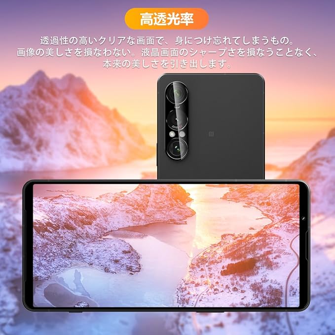 【9H強度&飛散防止】対応 Xperia 1 VII レンズ 強化ガラス 保護フィルムは日本旭硝子素材を採用します。 落下、スクラッチ、衝突、衝撃に高い耐久性があります 衝撃を