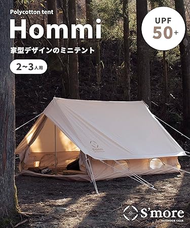 S'more (スモア) Hommi テント ポリコットン 小屋型 家型 収納バッグ付き ファミリーテント 2〜3人用 260*210cm キャンプ テント おしゃれ 撥水加工通気性 吸湿性 撥水 難燃 UPF50+ 抗菌 UVカット アウトドア 日除け バーベキュー a