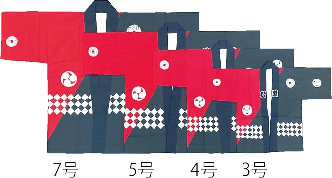 [§B∞BLUE HANDS] 子供用 半天 帯 鉢巻 セット お祭り 運動会 黒 赤 綿100% 本格的 染め 和柄 a