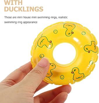 NOLITOY ミニ 水泳リング ドール 浮き輪 ミニチュア 可愛い アヒル柄 5個 5色 模型 モデル 情景 DIY素材 ジオラマ素材 パーティー 記念品 プラスチック ミニチュアうきわ 小さい浮き輪 おもちゃ a