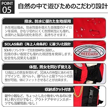REEDARK ライフジャケット ポケット付き 大人用 釣り カヤック フィッシングベスト スマホ防水ケース付き フローティングベスト レジャー 呼び笛付き 水泳 海水浴 川遊び FREEサイズ a