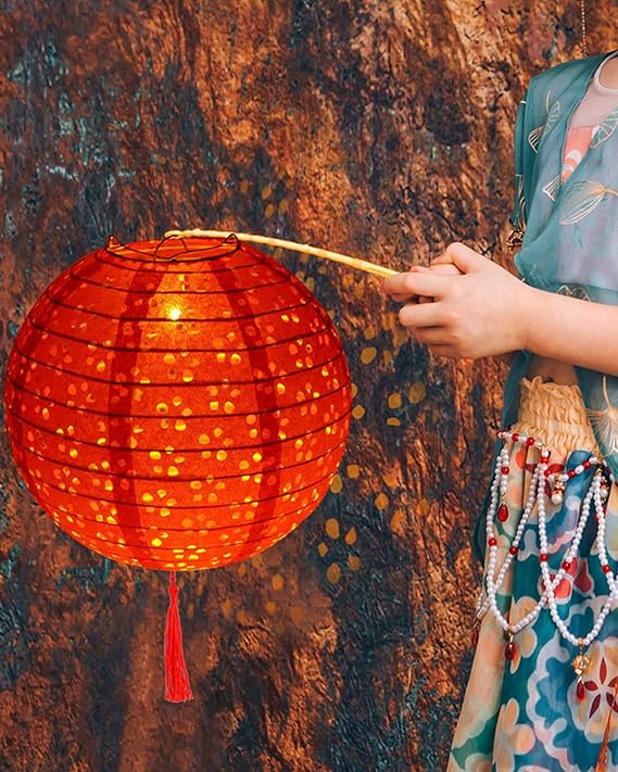 Lanito 紙提灯 お盆 紙ちょうちん 透かし彫り お盆飾り 提灯 LED付き 燈籠 カラフル 10個セット イベント お祭り 居酒屋/誕生日/結婚式/出店/DIY絵画/装飾用 (30cm) a