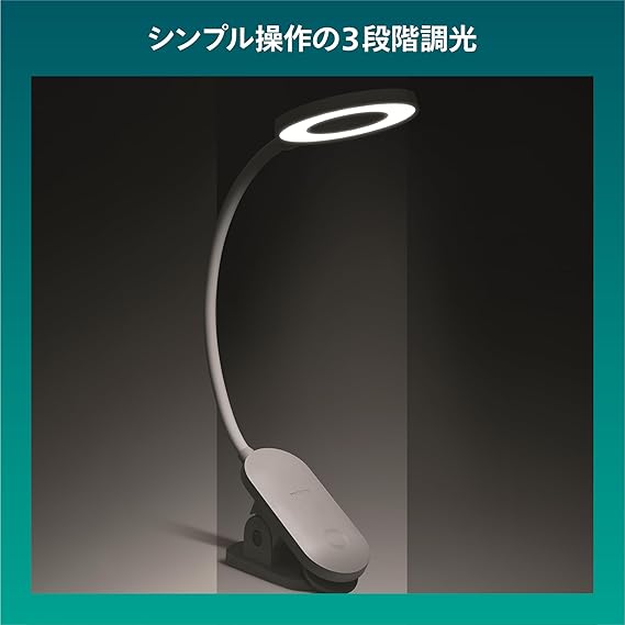 フィリップス(Philips) デスクライト クリップ式モデル - クリップライト 200lm Ra90 ポータブル 直置き可 Type-C リングライト 昼白色 4000k 角度自由 調光 学習机 おしゃれ 卓上ライト 子供部屋 Forys Clip DSK206 a