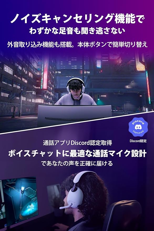 すべての音に、耳を澄ませ ノイズキャンセリング機能搭載 ソニーのイヤフォン1000Xシリーズで実績のあるデュアルノイズセンサーテクノロジーによる ノイズキャンセリング機能とアンビエントサウンドモード(外音取り込み)を搭載 外音遮断することによりゲームへの没入感を高める