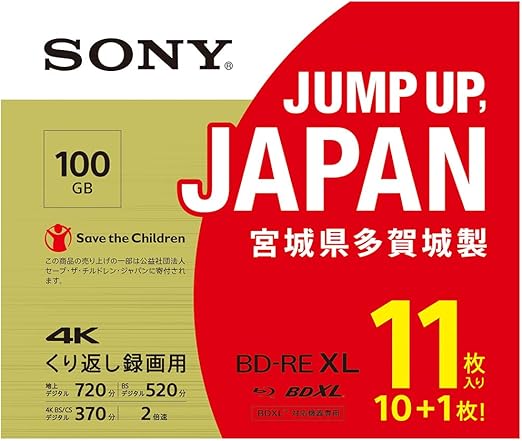ソニー(SONY) 日本製 ブルーレイディスク BD-RE XL 100GB (1枚あたり地デジ約12時間) 繰り返し録画用 11枚入り 2倍速ダビング対応 ケース付属 11BNE3VZPS2 a