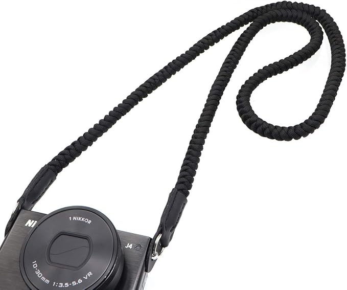 INPON カメラストラップ パラコードINPON カメラストラップ パラコード編み ネックストラップ ショルダーストラップ 丸リング/リングカバー付き 一眼レフ/ミラーレスカメラ用 ブラック 線径13mm 全長105cm a