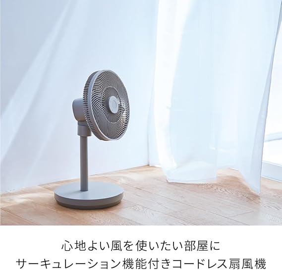 [コードレスだから欲しい風を持ち運びできる] コードレスでもパワフルな風量。軽量で持ち手もあるため、電源を確保しにくい場所にも、サッと持ち運んで使えます。また、扇風機としてだけでなくサーキュレーターとしても使え、オールシーズン快適な風と共に暮らせます。