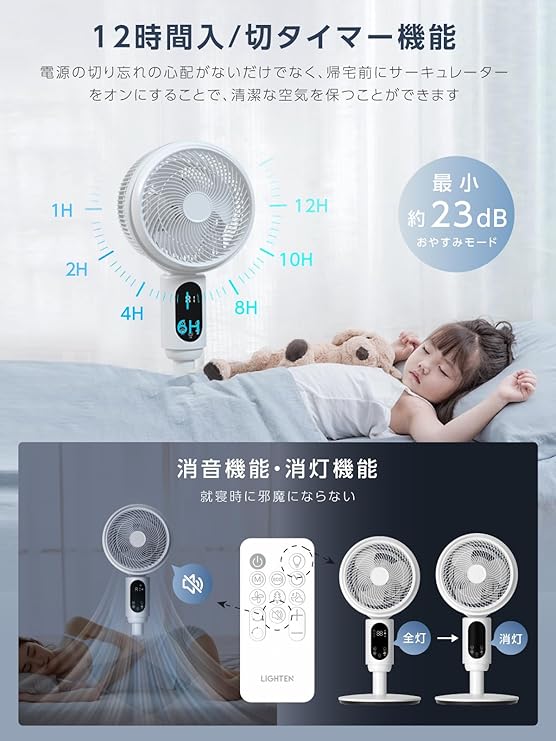 サーキュレーター 360度首振り 【2025新登場&節電対策】 扇風機 兼用 静音 省エネ リビング扇風機 リモコン付き 風量3段階調節 パワフル送風 高さ調整可能 タイマー付き 換気 空気循環 空気清浄 部屋干し 梅雨 除湿 衣類乾燥 猛暑対策 組み立て簡単 ファン(ホワイト) a