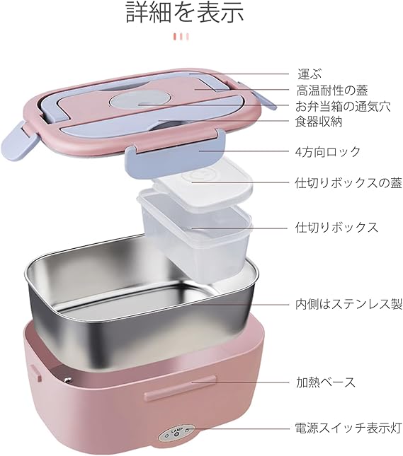 [電源があれば、どこでも昼食を加熱してください]使いやすいです。冷たい食品をステンレス鋼ディスクに入れ、電力を接続し、20〜30分間待ちます。食べ物は70度の温度に達することができます。短い昼食時に新鮮でおいしいランチを楽しむことができます。または、昼寝時間を過ごすことができます。あなたはあなたの旅で温かい食べ物を食べることができ、蓋の柔らかいハンドルのデザインは簡単にマスターできます。それはランチボックスのように見えるので、学校、オフィス、キャンプなどのさまざまな場所で使用できます。携帯性も非