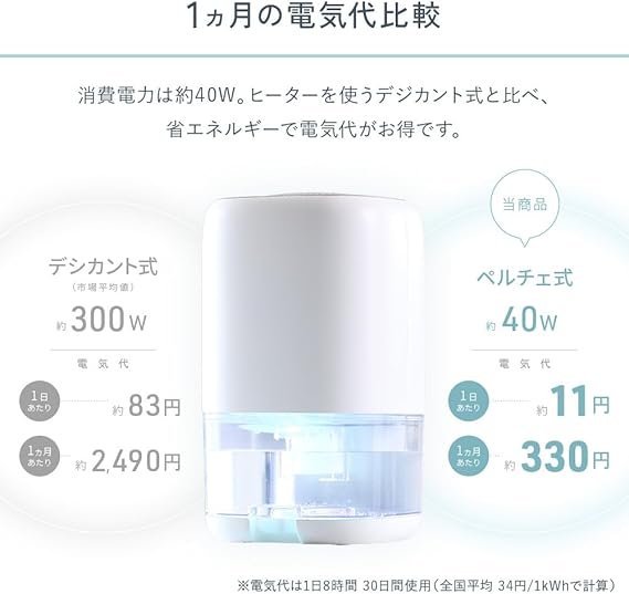 【エコでクリーンなペルチェ式】 本体内部のペルチェ素子によって湿