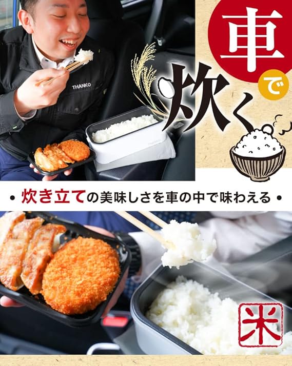 THANKO 車中泊で炊き立てご飯「車載用12V弁当箱炊飯器」TKLUN21W 【シガーソケット電源】 a