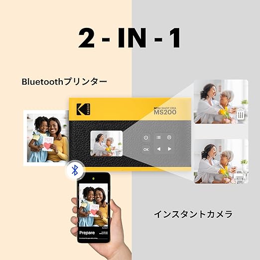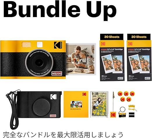 KODAK Mini Shot 2 ERA 4PASS 2-in-1 チェキカメラ&スマホプリンター(2.1x3.4")+8枚、ブラック (カメラ + 68枚入+アクセサリーセット, イエロー) a | yorozuyah