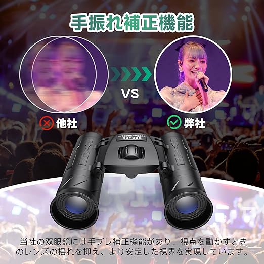 双眼鏡 ライブ用 20倍 オペラグラス 防振【業界先端BAK4光学レンズ&FMC多層コーティング】超軽量 コンパクト 防水防塵 メガネ対応双眼鏡 倍率調整可能 バードウォッチング/スポーツ観戦用/コンサート用/野鳥観察/卒業コンサート 日本語取扱説明書 (Black) a