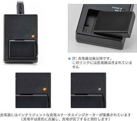 【機能】カメラバッテリー充電器は ABS 素材で作られており、軽量で耐久性があります。複数の保護層 (過充電、短絡、高温、サージ保護) を備えています