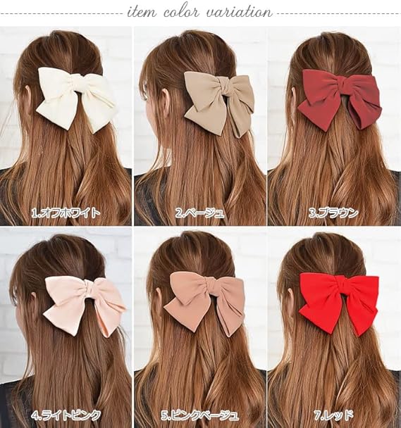 2段リボン バレッタ 大きめ 卒業式 レディース 結婚式 おしゃれ ヘアアクセサリー 4.ライトピンク a