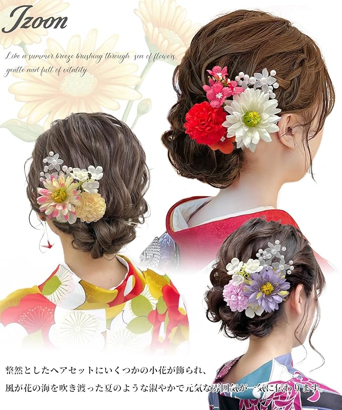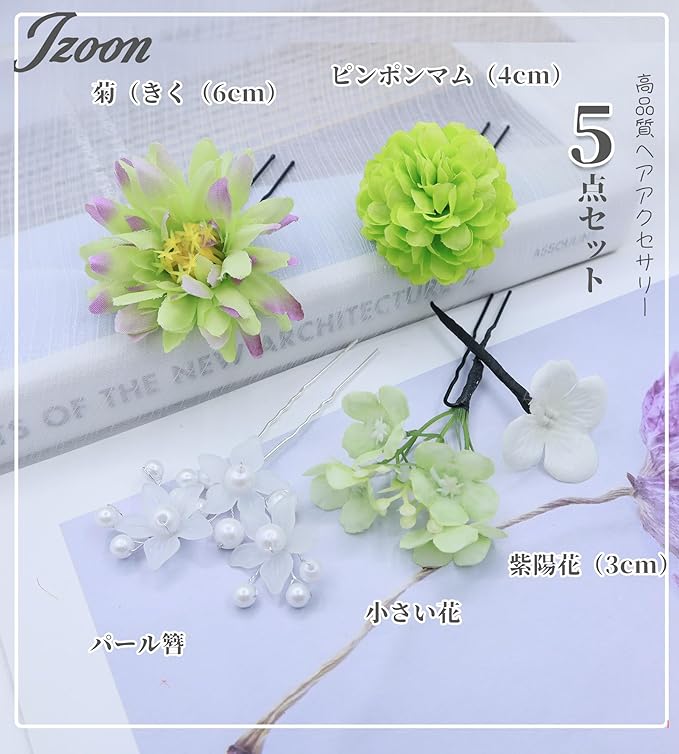 【JZOON 髪飾り】 全10色 浴衣 髪飾り ヘアアクセサリー ヘッドドレス ヘアメイク 成人式 和装 着物 振袖 袴 浴衣 夏祭り造花 花飾り 花火大会 卒業式 七五三 結婚式 造花 花飾り 簡潔 髪留め 入学式 発表会 アクセサリー Y1801 緑 a
