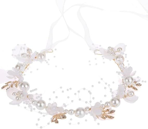 サムコス 髪飾り ヘアバンド カチューシャ 花冠 クラウン 女の子 子供ヘッドドレス ヘアアクセサリー 結婚式/披露宴/卒業式/入学式/パーティー/ダンス/和装/撮影 (クラシックパール ホワイト) a