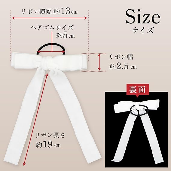ベロア リボン ヘアゴム 2個入り 【ホワイト】 白 ロングリボン 長い ヘアアクセサリー 髪飾り 髪留め 可愛い かわいい おしゃれ きらきらぷんぷん丸 HGM-009 a