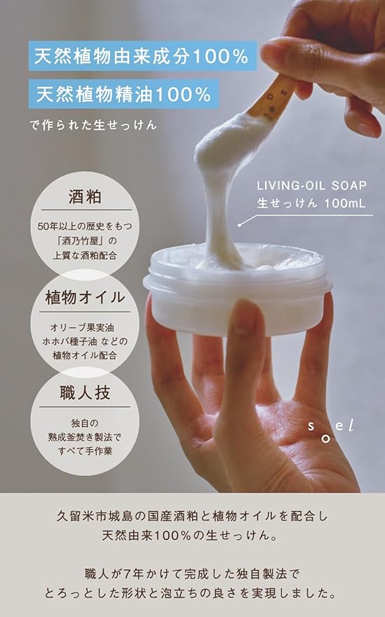 soel LIVING-OIL とろける洗顔生せっけん 100mL 濃密泡 天然植物由来 セサミオイル 酒粕 もっちり肌 天然の香り a