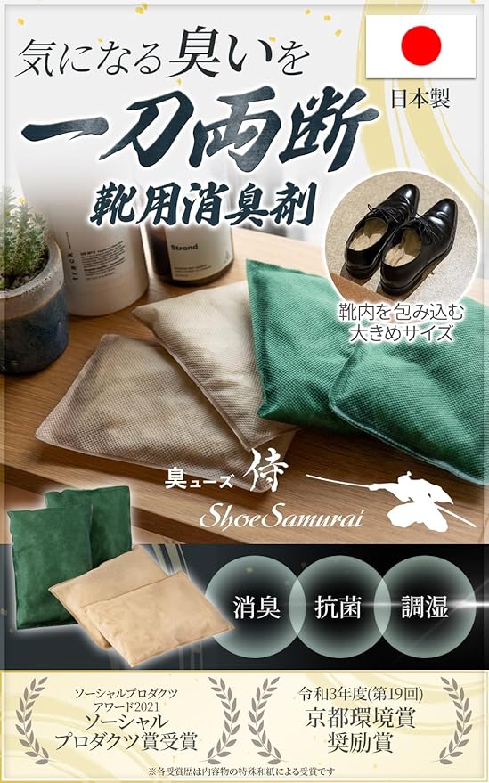 臭ューズ侍 靴 消臭 入れるだけ 2足分 【悪臭98%カット】 繰り返し使える 消臭剤 靴箱 除湿 抗菌 梅雨対策 無香料 日本製 a