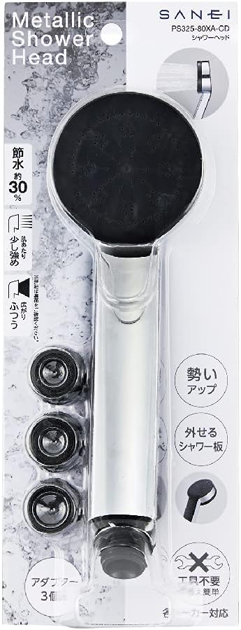 SANEI(サンエイ) シャワーヘッド 節水30% アダプター付き 軽量型 前面めっき 背面ブラック PS325-80XA-CD a