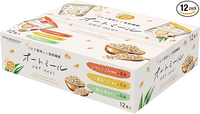 原材料:オートミールトマトバジル風味:オートミール[オーツ麦(オーストラリア)]、液体スープ[食塩、トマトパウダー、砂糖、しょうゆ(小麦・大豆を含む)、トマトペースト、チキンエキス、バジル、酵母エキス/調味料(アミノ酸等)、増粘剤(キサンタン)] オートミール梅しそ風味:オートミール[オーツ麦(オーストラリア)]、液体スープ[砂糖混合ぶどう糖果糖液糖、梅酢、食塩、梅肉、梅しそパ