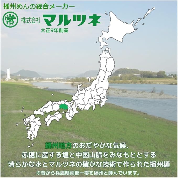 播州麺の本場、播州龍野に流れる清流揖保川のほとりにて播州麺の綜合メーカー マルツネの確かな技術で作られた播州麺