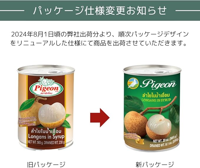『ピジョン』ロンガンのシロップ缶詰め 565g 3個セット (Canned Longan in syrup 565g Set of 3) a