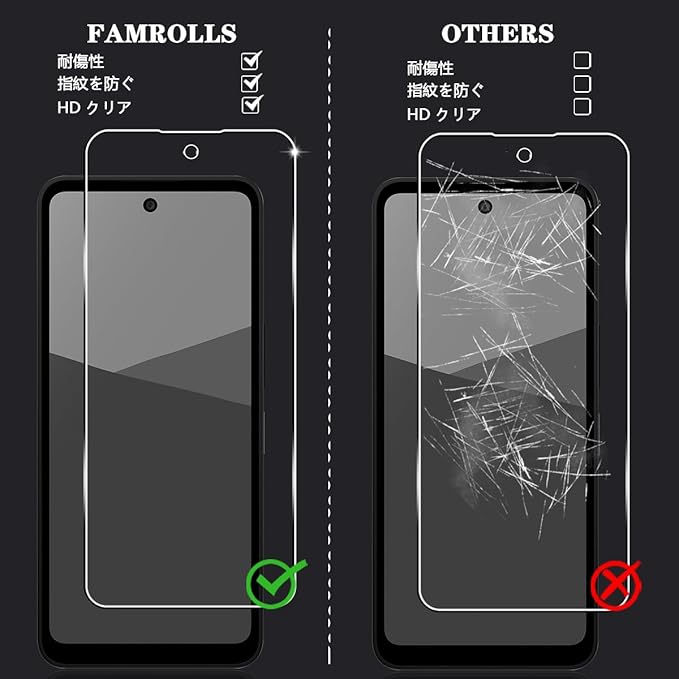 【対応機種】 AQUOS Wish 5 SH-52F / SH-M32 専用。素材に日本製の旭硝子を採用。【四枚セット】 2枚 用 AQUOS Wish5 強化ガラスフィルム+ 2枚カメラ保護フィルム。【FAMROLLS正規品】スマホの周辺アクセサリーを長年手掛けるFAMROLLSメーカーの人気スマホガラスフィルムです。安心してご注文ください。