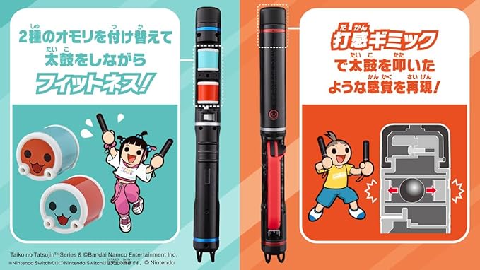 Nintendo Switch太鼓の達人シリーズの「フリフリ演奏」をより本格的に楽しめるアタッチメントが登場!本体の重さを調整することで、いつもの演奏がフィットネスに!