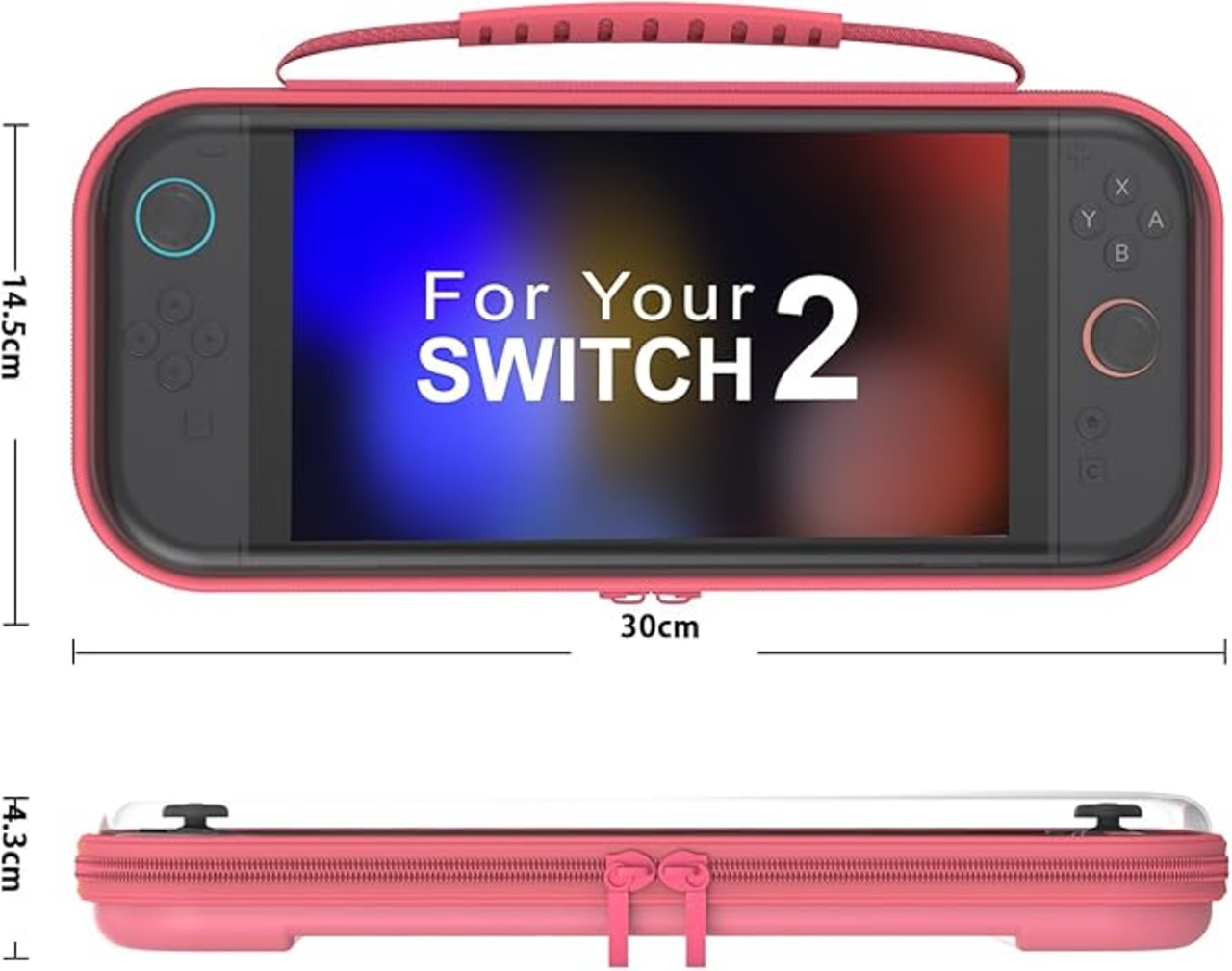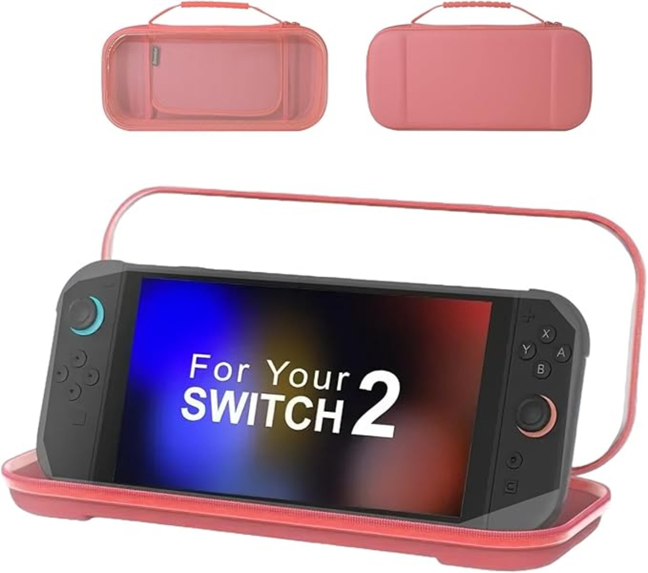 Gearsir 【令和7年新登場】Switch2対応 ケース スイッチ2専用クリアキャリーケース EVAハードシェル 軽量Switch 2専用 スリムハードポーチ スイッチ 2対応 透明収納バッグ 保護 大容量 防塵 防水 防振 12ゲームカードスロット ハンドル付き携帯便利 旅行には必須 (ピンク) a