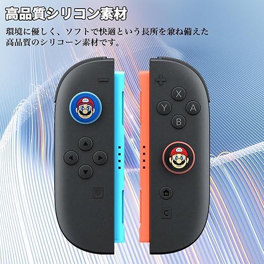Mosasa For Switch 2 アナログスティックカバー スティックカバー シリコン 可愛い おしゃれ 保護カバー 耐衝撃 滑り止め 親指グリップキャップ (4個セット,ブルー+ブラック) a