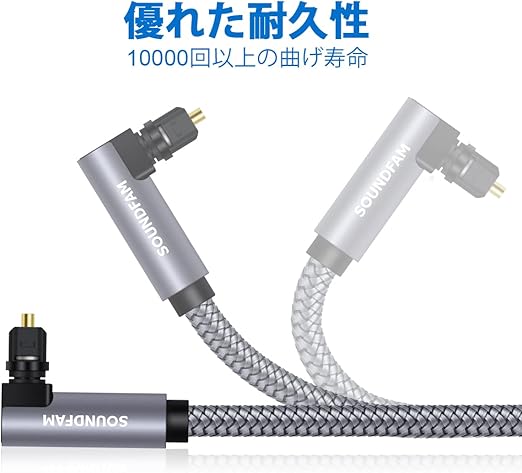 90度 光オーディオケーブル SOUNDFAM 直角 TOSLINK 光ケーブル 360度自由回転プラグ デジタルオプティカルオーディオケーブル オス-オス サウンドバー テレビ用-グレー (1M) a