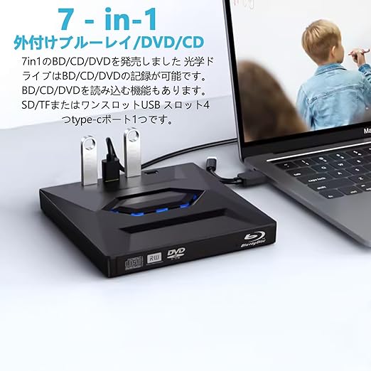 ブルーレイドライブ 外付け ブルーレイプレーヤー 【2025革新高速版・多機能&静音】外付けブルーレイドライブ BD/CD/DVDプレーヤー USB3.0&Type-C両接続 CD/DVD再生/読み込み Blu-ray 外付けドライブ ブルーレイドライブ 薄型 軽量 CD/DVDドライブ 外付け Windows11 10/8/7/XP Mac対応 (ブラック) a