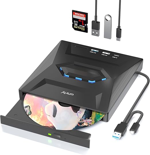Alxum 超高速 CD/DVD ドライブ 外付け-ノートPC/デスクトップPC専用,5-IN-1 USB Type-C/USB 3.0 Aポータブル DVD 8倍速 CD 24倍速 レコーダー、SDスロット搭載、PC CDドライブ 外付け Window/Mac OS/Linux/Vista対応 黒 a