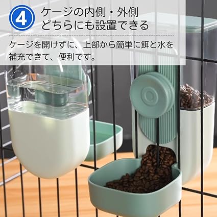 ateena 自動給餌器 自動餌やり機 犬 猫 うさぎ 自動給水器 餌 水飲み えさやり 自動 ケージ取り付け対応 電池不要 A (グリーン, 給餌器+給水器)