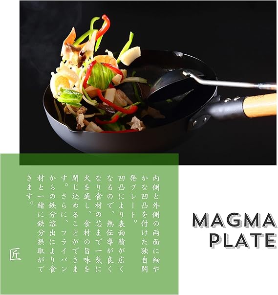 素材・材質:マグマプレート(鉄)、取っ手:天然木(ブナ材) 取っ手取付金具:アルミダイキャスト