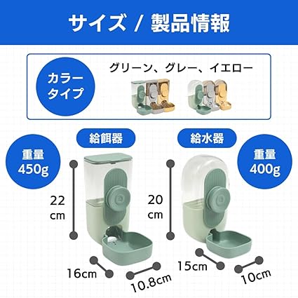ateena 自動給餌器 自動餌やり機 犬 猫 うさぎ 自動給水器 餌 水飲み えさやり 自動 ケージ取り付け対応 電池不要 A (グリーン, 給水器)