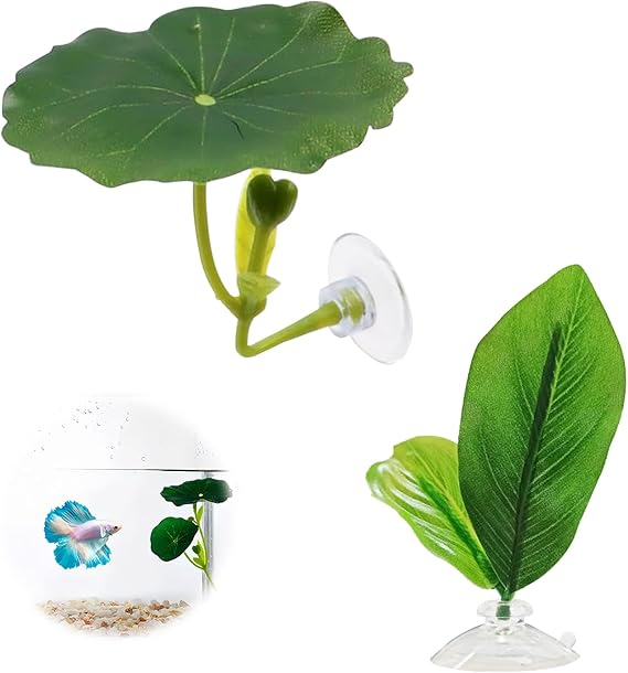 PAVIKE ベタベッドリーフ 2枚セットベタの魚の葉 ベタの産卵葉 ベタ用休憩リーフ 吸盤付き 自然再現設計魚 水槽 アクセサリー アクアリウム装飾 観賞魚/熱帯魚/金魚 隠れ家 水族館内装 産卵 繁殖用 a