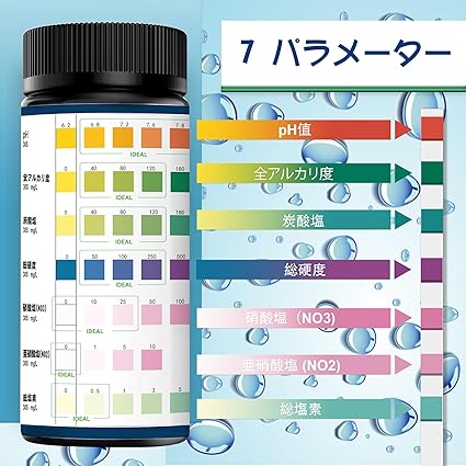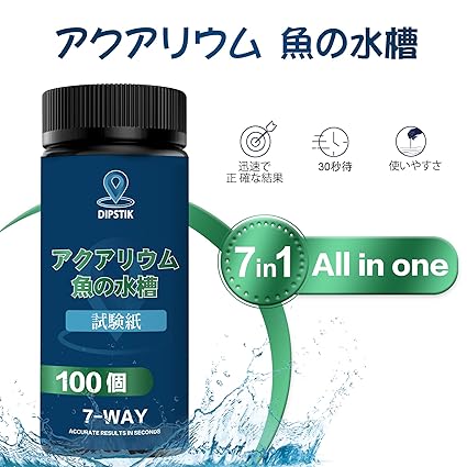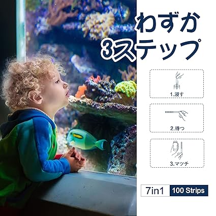 淡水魚用アクアリウムテストストリップ:7イン1 水槽水テストキット 水槽用 高速&正確な検査 硝酸塩、亜硝酸塩、一般硬度、pH、炭酸、全アルカリ度、全塩素