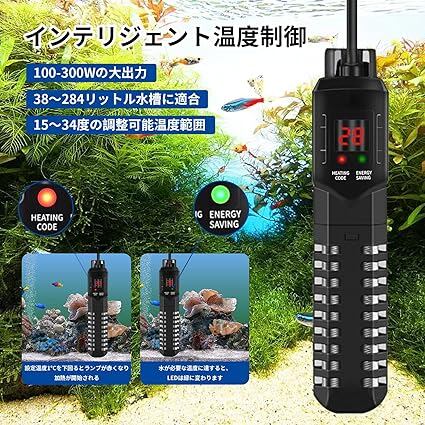 ZHHMl 水槽ヒーター オートヒーター LEDディスプレー 15-34°C温度調節 安全カバー付き熱帯魚用ヒーター 縦横設置 淡水海水両用 金魚 メダカ アクアリウム (200W) a