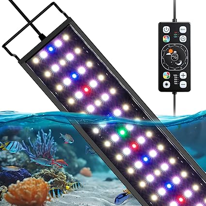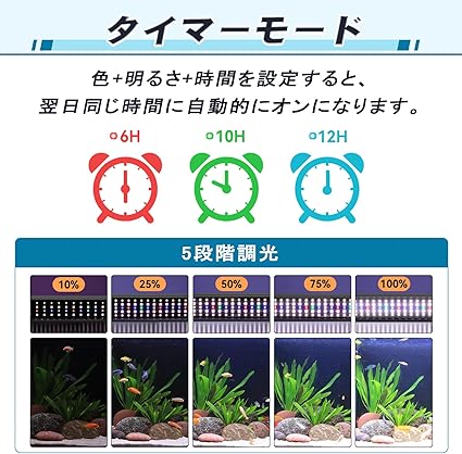 hygger 水槽ライト 30-45CM対応 24/7自然モード 時間設定可能 6/10/12Hタイマー 7色ライト+フルスペクトル 5段階明るさ調整 7色循環点灯 60LED アクアリウムライト 防水 観賞魚飼育 水草育成用 14W a