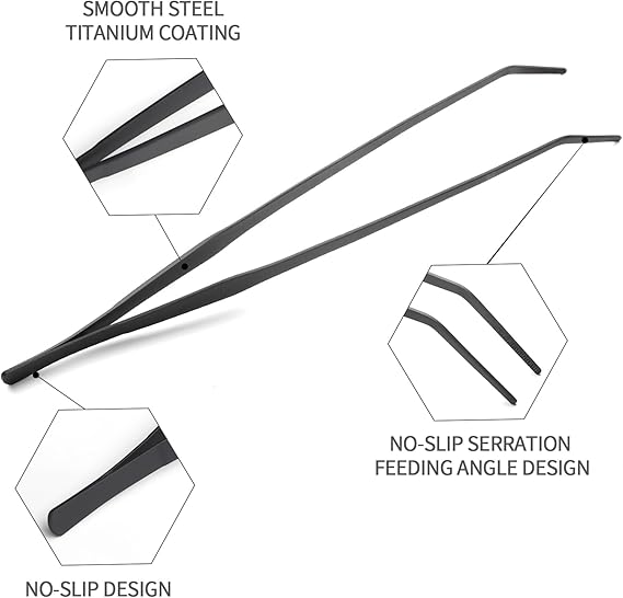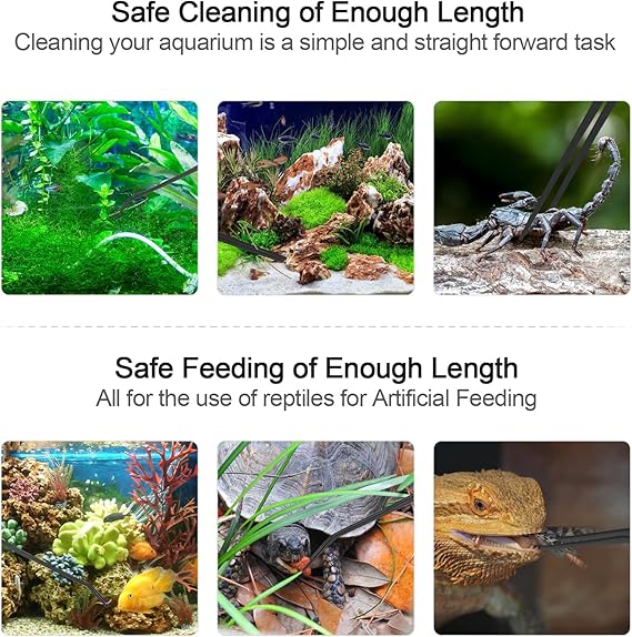 安全でフレンドリーなフィードトング - タンクに長い蛇の餌やりトングが噛まれる可能性からあなたを守ります。隆起したハンドルは指に安全で快適なグリップを提供し、最適な給餌角度のための斜めの先端、鋸歯状の爪、滑り止めクリップエンドは食べ物が落ちるのを防ぎま