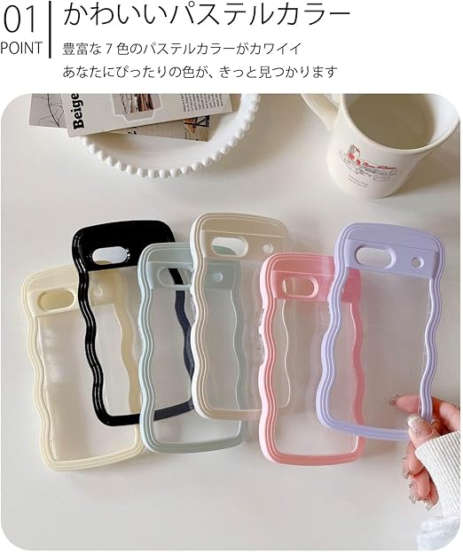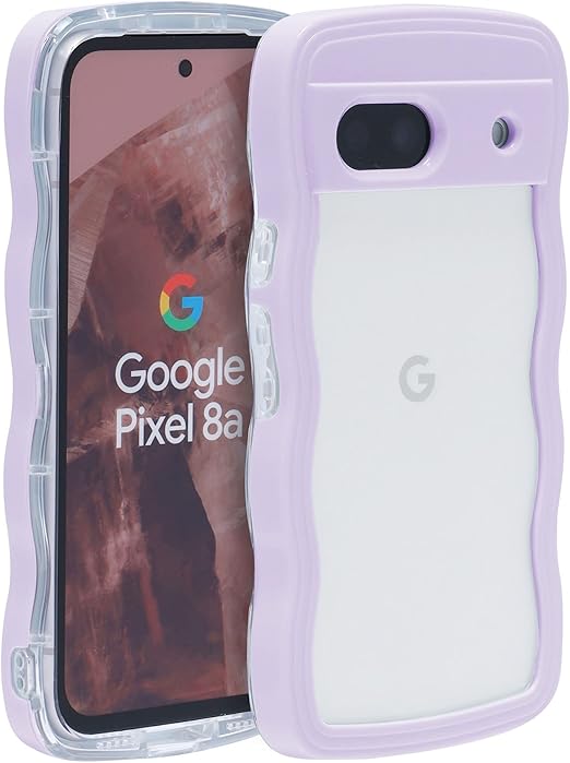 Google Pixel 8A ケース ウェーブ ピクセル 8a うねうね 人気 韓国 耐衝撃 超軽量 薄型 おしゃれ pixel8a なみなみ パステル 可愛い 透明 オタ活 推し活 (パープル, pixel8a) a