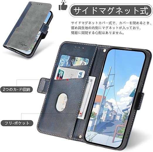 Pixel 8a ケース 手帳型 ピクセル8a ケース Google Pixel 8a手帳型ケース ストラップ付 Pixel 8aスマホケース Pixel 8a カバー カード入れ収納 スタンド機能 マグネット式Pixel 8a ケース財布型 (Pixel 8a,グレー+ブルー) a