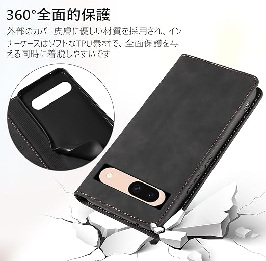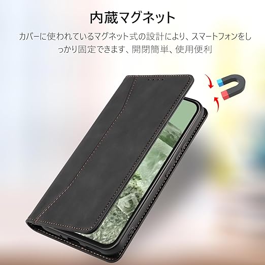 KWATUNG google pixel8a 用 ケース 手帳型 おしゃれ グーグルピクセル8a 用 ケース 手帳型 肌感レザー google pixel 8a 用 ケース 手帳型 内蔵マグネット 耐衝撃 カード収納 スタンド機能 googleピクセル8a 用ケース 手帳型 全面保護 Pixel 8a スマホケース Pixel 8a 用 手帳型ケース ブラック a