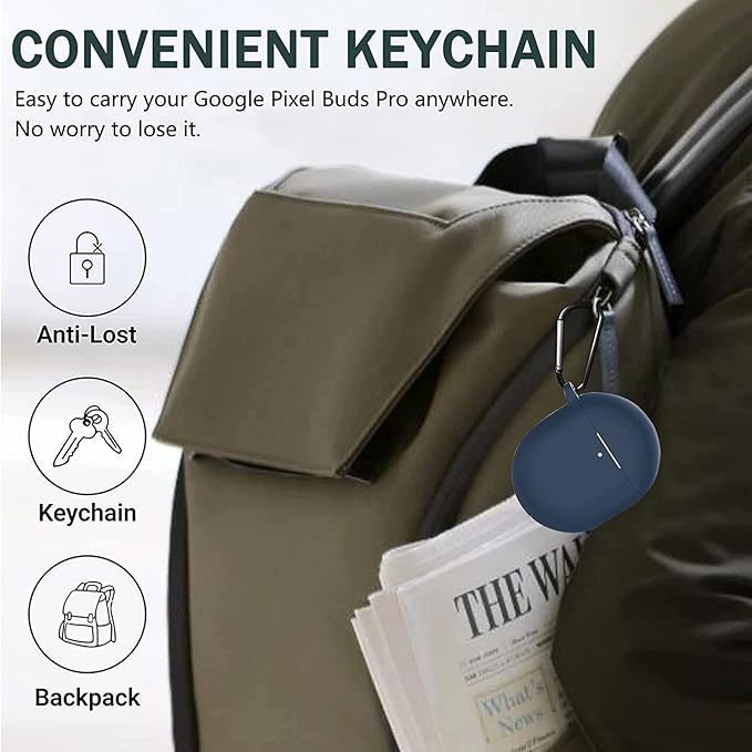 ANYOI Google Pixel Buds Pro 用 ケース 全面保護カバー シリコンケース 【カラビナ付き】軽量 防塵 耐衝撃 装着充電可能 全面保護 キズ防止 Google Pixel Buds Pro 対応 (ブルー) a