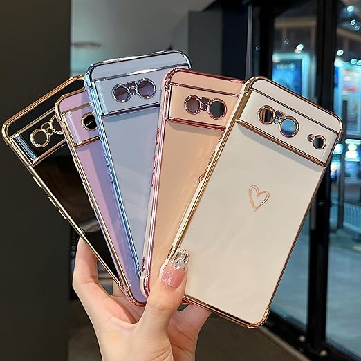 ZTOFERA Google Pixel 8 用 ハートケース おしゃれ 韓国 かわいい グーグル ピクセル 8 ケース 柔軟な TPU シリコン メッキ加工 ソフト 軽量 耐衝撃 携帯カバー 女性 心パターン Pixel 8 スマホケース ワイヤレス充電対応 (パープル) a
