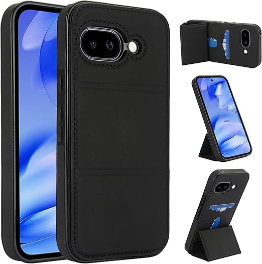 NKECXKJ Google Pixel 9a カード収納 スマホケース + グーグルピクセル9a ?化 ガラス フィルム PUレザー 折畳式 スタンド機能 携帯ケース 軽量 衝撃吸収 Case Cover Pixel9a ピクセル 9 a Google9aケース ぐー来るぴくせる9a グーグルgoole9a 財布型ケース 背面 カバー レディース(ブラック) a