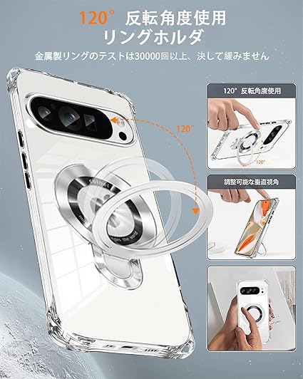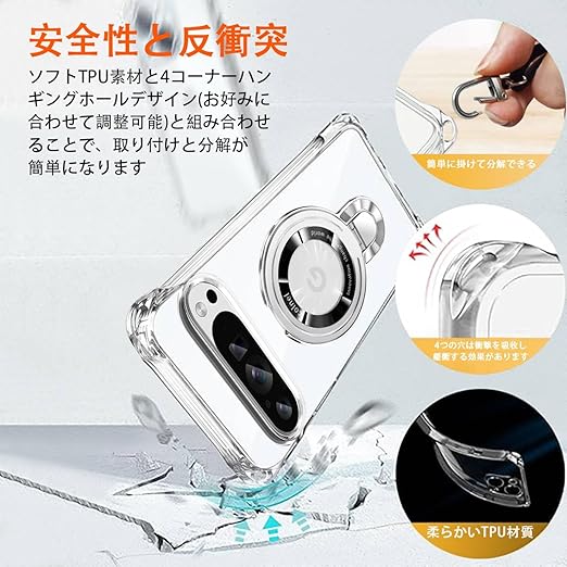 【対応機種】Google pixel 9Pro XL専用設計。透明な背面、場所、カメラ、磁気リングはすべて高材質の材料で作られています。薄くて丈夫で柔軟性が高く、程よいグリップ感があり、本体の持つスリムさをできる限り損なわないよう設計しています。